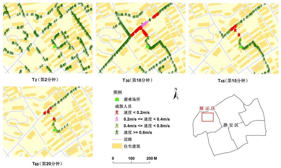 Agent-based evacuation simulation | | YU Jia, WEN Jiahong, 2016, Multi-criteria Satisfaction Assessment of Spatial Distribution of Urban Shelters based on High-precision Population Estimation, International Journal of Disaster Risk Science.7(4), 413-429. (SCI, 2016 IF: 1.222)