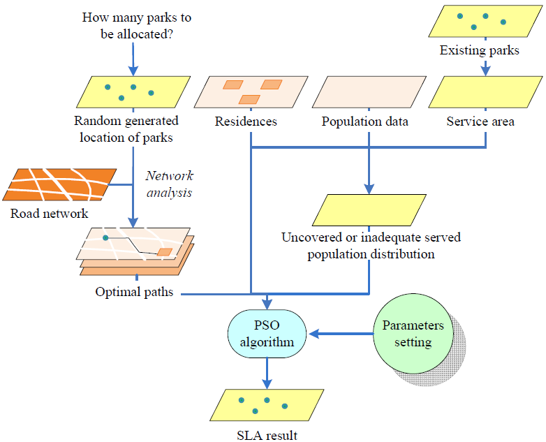 Architecture of particle swarm optimization based location allocation and analysis results for parks